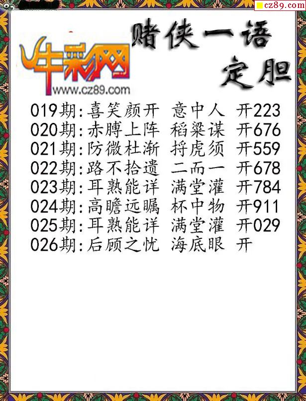 > 福彩3D2026026期彩赌侠一句定三码字图谜