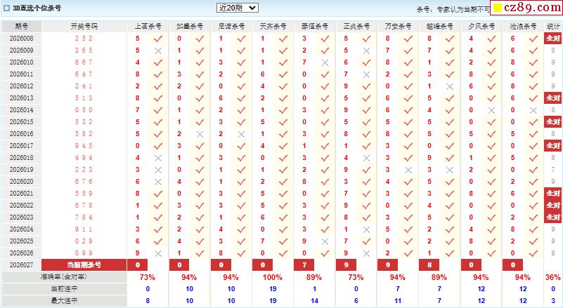 2026年027期体彩P3胆码杀码原创图总汇